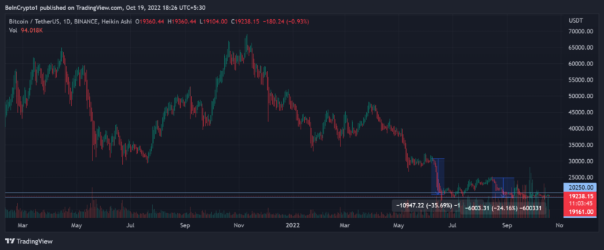 El precio de Bitcoin ha mantenido una mayor tendencia a la baja durante la mayor parte de este año. Como el precio de BTC se ha negociado por debajo de la marca de los 20,000 dólares durante más de dos semanas, los participantes del mercado están atentos a las señales de una ruptura.