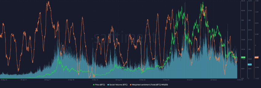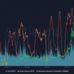 Además, el volumen social ha disminuido significativamente desde el tope del mercado, y el sentimiento ha tenido muchos más mínimos que máximos simultáneamente.