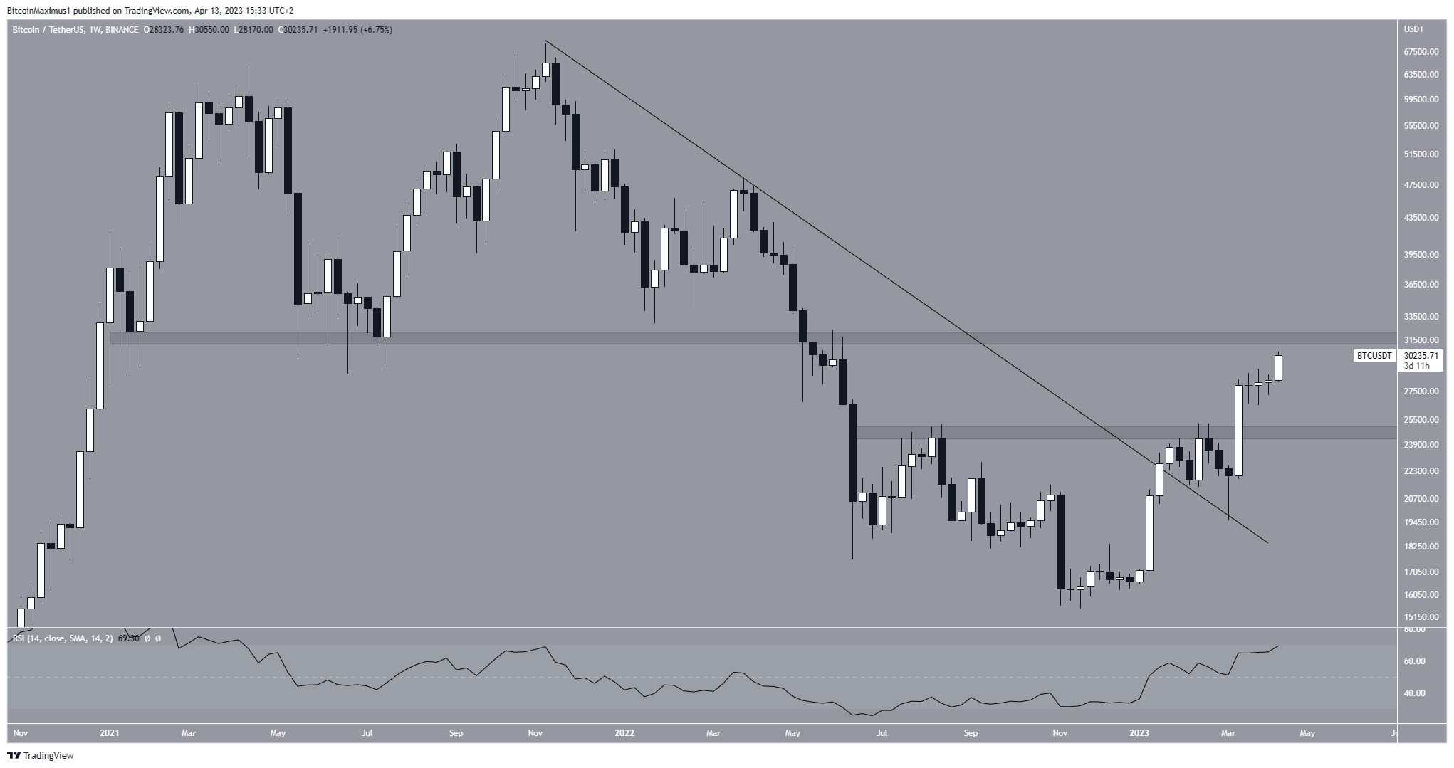 El precio de Bitcoin (BTC) se está moviendo hacia un área de resistencia a largo plazo tras finalmente superar los 30,000 dólares.