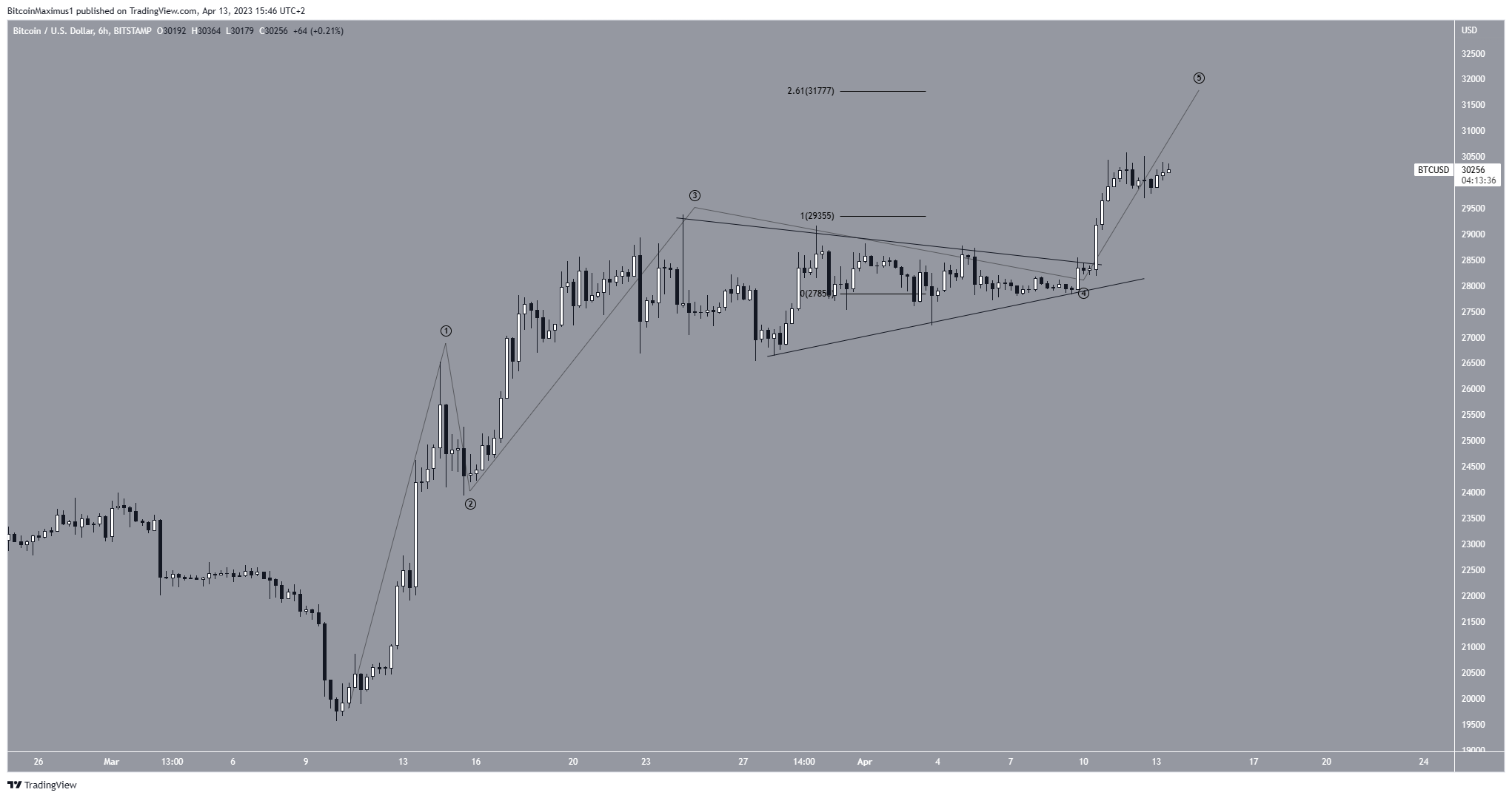 Finalmente, el recuento de ondas a corto plazo también se alinea con el movimiento ascendente. El precio de BTC se encuentra en la quinta y última onda de un aumento que comenzó el 10 de marzo.