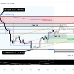 - Por encima de los valores actuales, existe un área de precios ineficientes FVG 1W (34,277 dólares – 37,406 dólares), lo que puede causar un mayor margen de beneficio. El rango de precios de 37,400 dólares – 48,700 dólares sirve como una zona de resistencia seria. A continuación, se forma un desequilibrio semanal alcista FVG 1W (22,591 dólares – 26,591 dólares), que actúa como un imán para el precio. Tras un aumento agresivo el 30 de marzo y la salida del rango lateral, se formó un área de soporte (19,592 dólares – 25,234 dólares). En esta zona hay una brecha de precios en el CME.