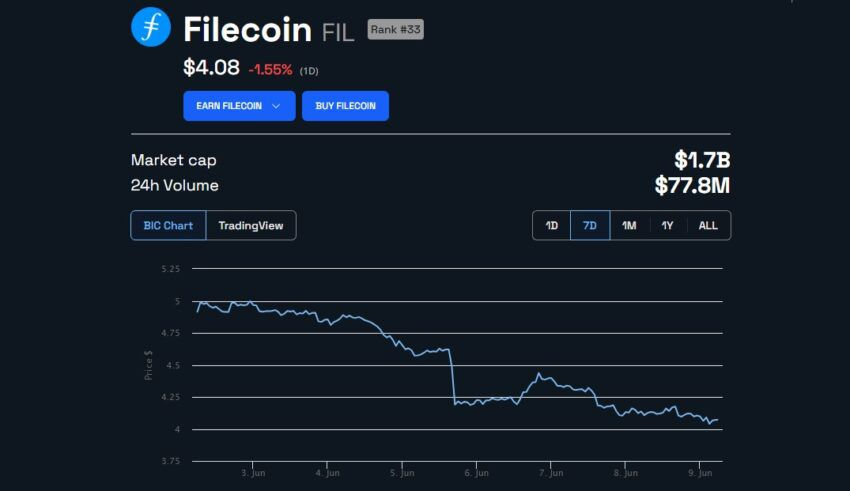 El token de Filecoin ha caído más del 15% desde que la SEC denunció a Binance y Coinbase. No es el único token que la SEC cree que es un valor y, en general, el mercado ha caído considerablemente desde que se presentaron las demandas. Actualmente se cotiza a alrededor de 4.08 dólares.