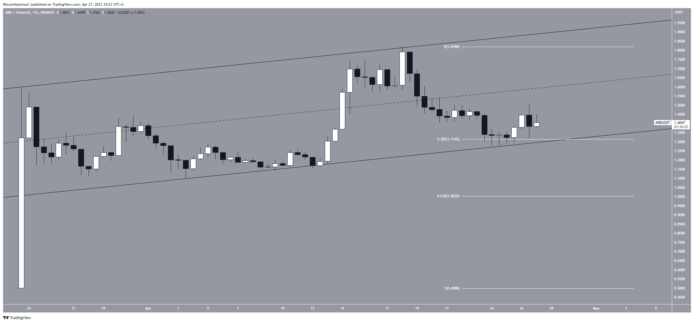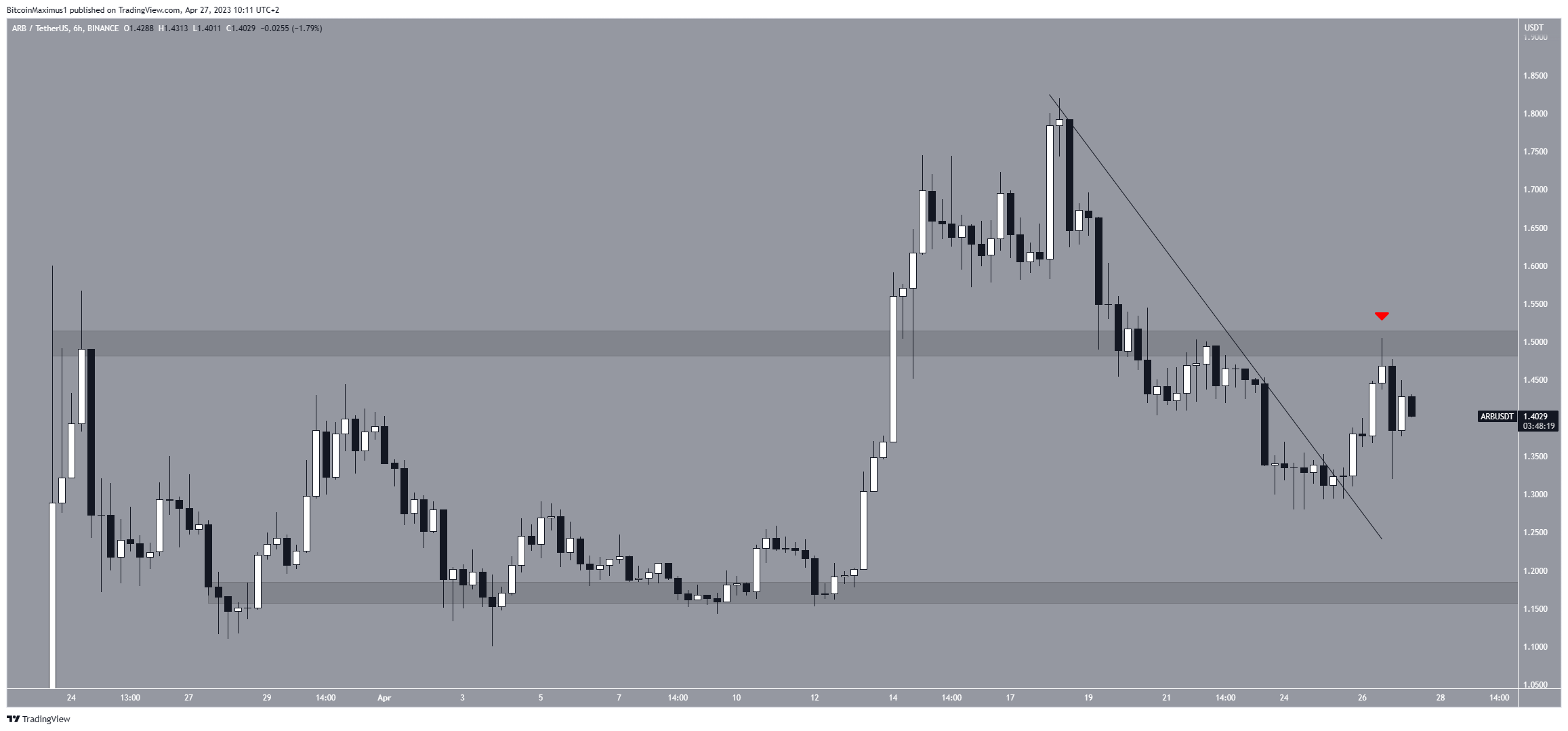 El precio de ARB ha aumentado desde el 24 de abril, cuando alcanzó un mínimo de 1.30 dólares. El mismo día, salió de una línea de resistencia descendente y alcanzó un máximo de 1.50 dólares dos días después.