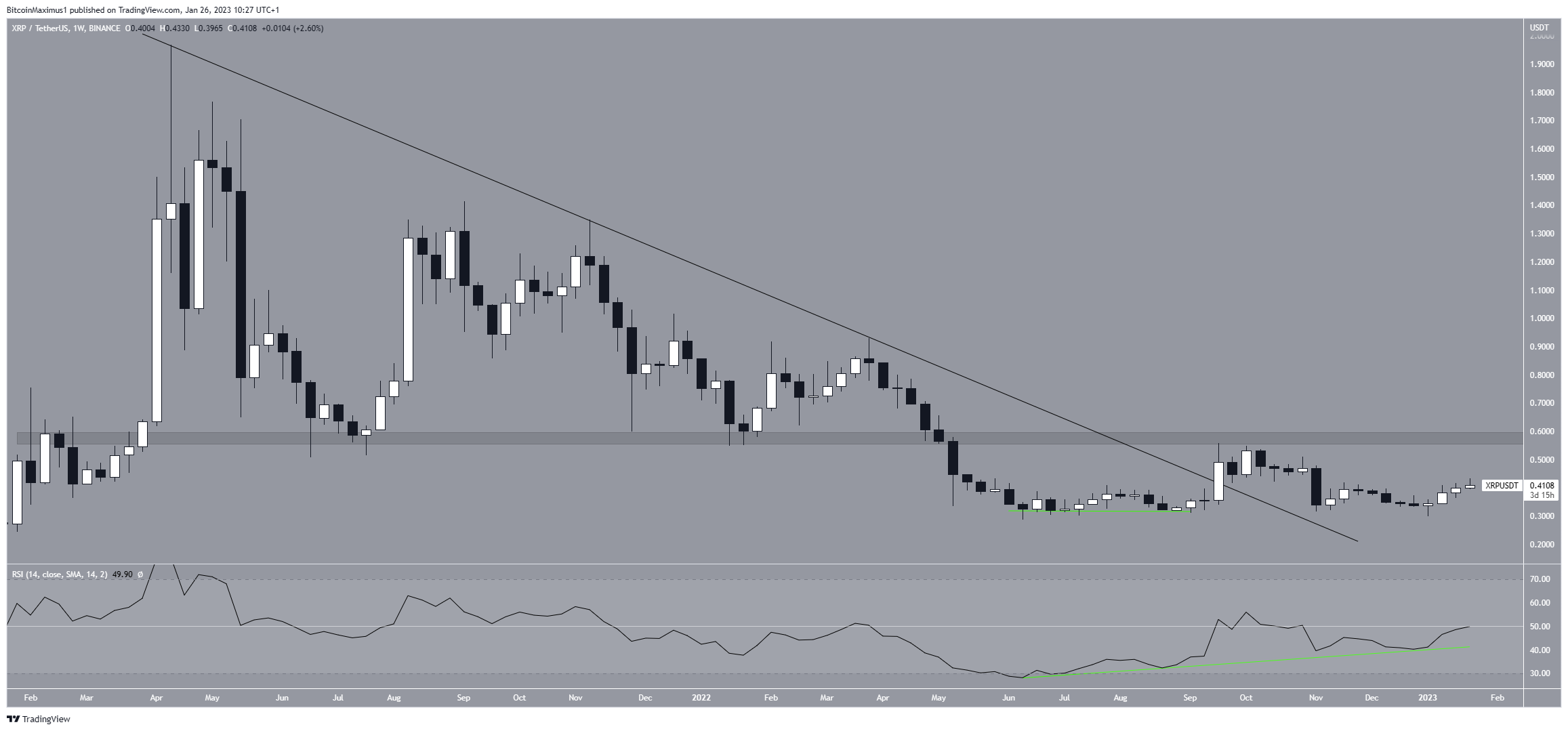 El precio de XRP está intentando salir de un triángulo simétrico a largo plazo. Hacerlo probablemente aceleraría la tasa de aumento. Sin embargo, aún no hay noticias decisivas de XRP con respecto al caso Ripple vs. SEC.