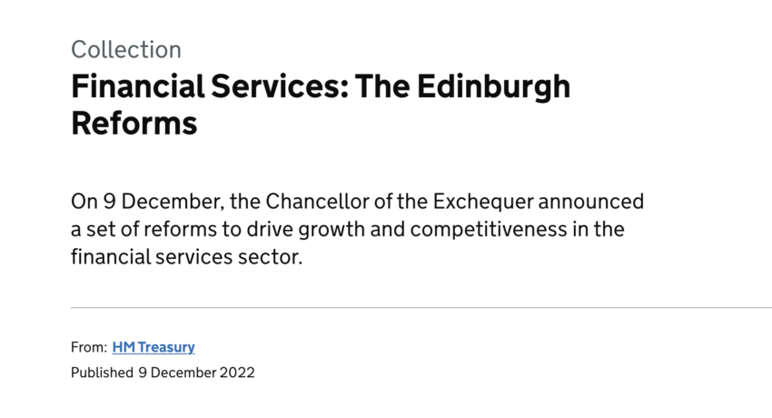 Este 09 de diciembre, el Tesoro de Su Majestad el Reino Unido anunció las reformas de Edimburgo para impulsar el crecimiento y la competitividad en el sector de los servicios financieros. HM Treasury es una abreviatura de la tesorería de Su Majestad, que es la tesorería económica y financiera del gobierno.
