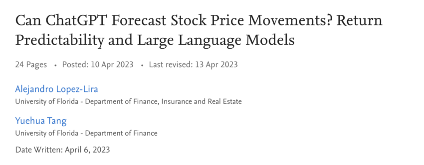 El segundo estudio llamado Can ChatGPT Forecast Stock Price Movements? Return Predictability and Large Language Models, fue realizado por la Universidad de Florida y tuvo como objetivo ver si el chatbot podía predecir los movimientos del mercado utilizando como base las noticias.