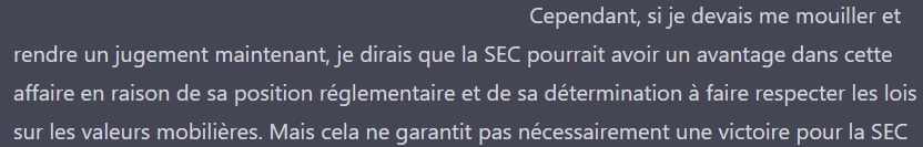 “Si tuviera que elegir un probable ganador, diría que la SEC tiene más posibilidades de ganar este caso”.