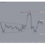 Un análisis del recuento de ondas indica que es probable que haya más caídas. La razón principal de esto es la estructura correctiva A-B-C completa en la que la onda B tomó la forma de un triángulo y las ondas A:C tenían una proporción exacta de 1:1.