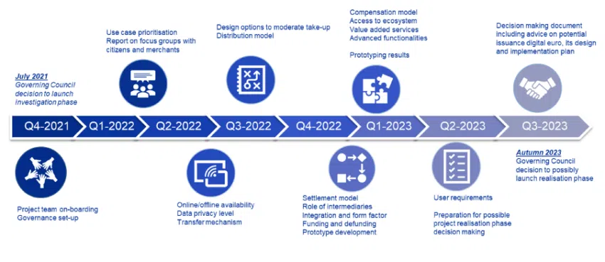 Europa, en particular, se ha apresurado a desplegar su euro digital. Su segundo y más reciente informe de progreso, titulado “Progreso en la fase de investigación de un euro digital”, se publicó a fines del año pasado. El Banco Central Europeo (BCE) compartió un cronograma acelerado con respecto a su informe de septiembre de 2022.