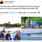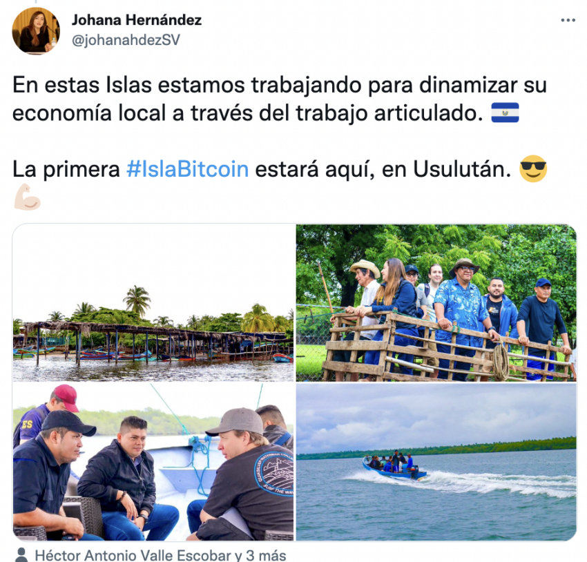 “Últimamente con el gobernador @Hector_ValleSV hemos estado visitando las Islas de San Dionisio.Esta vez fuimos con el equipo de la alcaldía municipal, junto a Michael Peterson de @Bitcoinbeach y John Dennehy fundador de la Organización @MyfirstBitcoin_.”