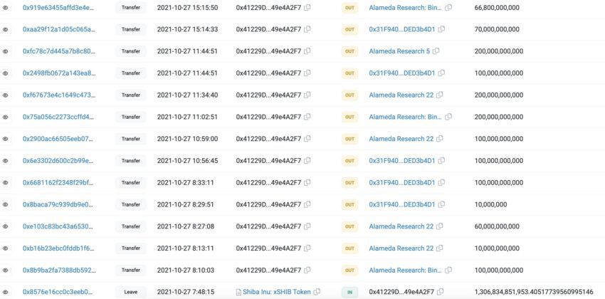 “El 27 de octubre de 2021, el farmer más grande de Shiba Inu desembolsó 107 millones de dólares en SHIB y lo envió todo a FTX, Huobi, Binance y OKX”.