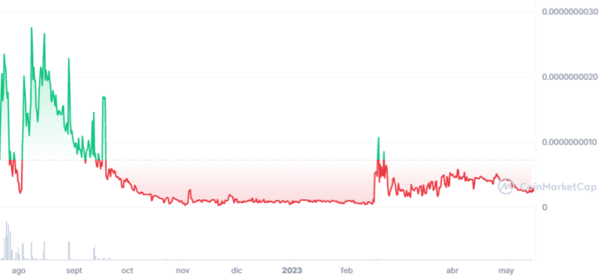 Evolución del precio de Saudi Shiba Inu desde su lanzamiento. Fuente: CoinMarketCap