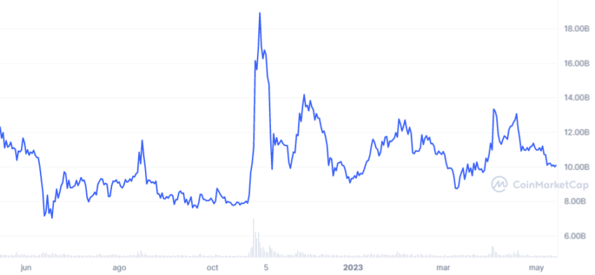 Capitalización de mercado de un año y hasta la fecha de Dogecoin. Fuente: CoinMarketCap