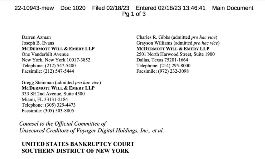 El caso de bancarrota de Voyager Digital ha comenzado en Nueva York, y la citación pide que Bankman-Fried testifique el 23 de febrero en San Francisco. Según el expediente, las autoridades entregaron la citación a la madre de Bankman-Fried en California.