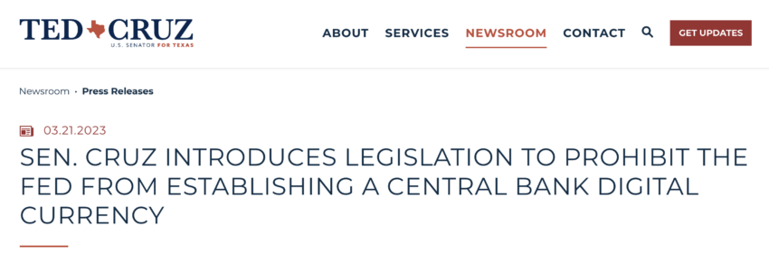 Apenas unas horas después que el Congresista republicano Warren Davidson llamara a sus pares a combatir en contra de los esfuerzos estatales por promover una CBDC, el rechazo a esa posibilidad suma voluntades. En esta ocasión fue Ted Cruz, Senador del mismo partido que Davidson quien impulsó un proyecto de ley que pretende obstruir que la Reserva Federal (FED), el banco central de los Estados Unidos, emita una CBDC, o moneda digital de banco central.