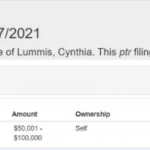 Captura de pantalla de la presentación de PTR para la senadora Cynthia Lummis que muestra una compra de Bitcoin.