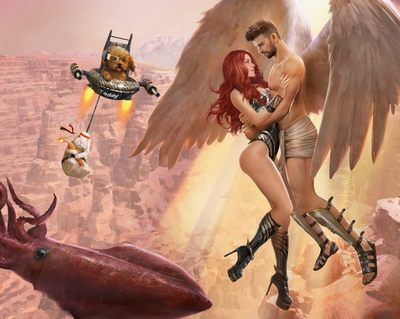 Una de las obras peculiares de la colección es “Save Me From Myself” (Sálvame de mi misma, en español). En esta obra, se puede ver a Shakira siendo rescatada por Gerard Piqué, quien aparece con alas de ángel y zapatillas de gladiador.