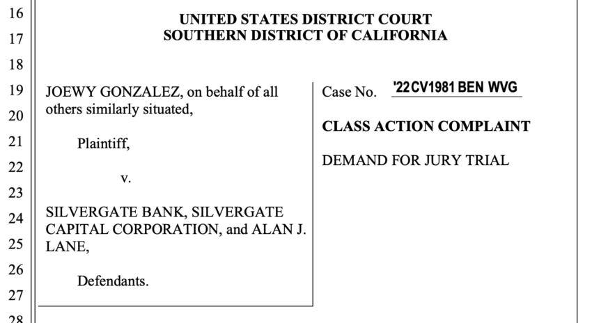 El banco cripto líder, Silvergate, fue criticado por una demanda colectiva de los inversores que invirtieron en el FTX colapsado.