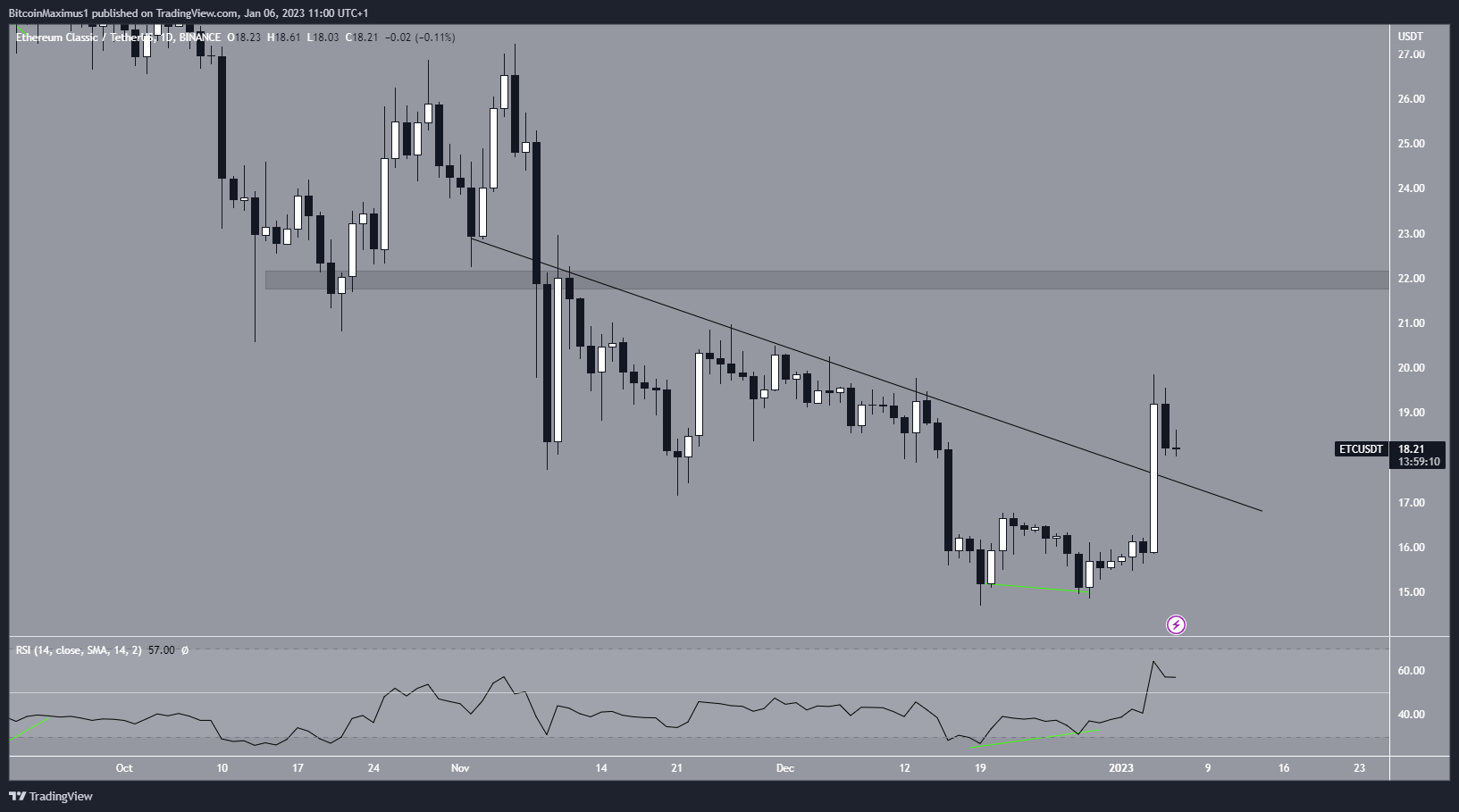 - El precio de Ethereum Classic (ETC) aumentó un 18.24%