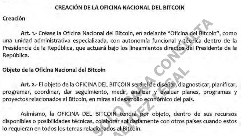 La oficina se encargará de “diseñar, diagnosticar, planificar, programar, coordinar, dar seguimiento, medir, analizar y evaluar planes, programas y proyectos relacionados a Bitcoin”, según mencionó el Diario Oficial, el pasado 17 de noviembre de 2022.