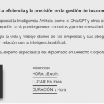 “¿Cómo se espera que afecte esta tecnología la vida y trabajo diarios de las empresas y sus abogados?. En esta conferencia se abordará la importancia de los contratos corporativos, en relación con la inteligencia artificial”.