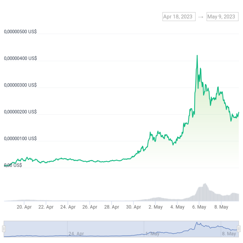 En las últimas semanas, el precio de Pepe ha llegado a superar ligeramente los 0.000002 dólares. Desde el inicio de las operaciones con $PEPE, la criptomoneda meme ha ganado más de un 100,000%.