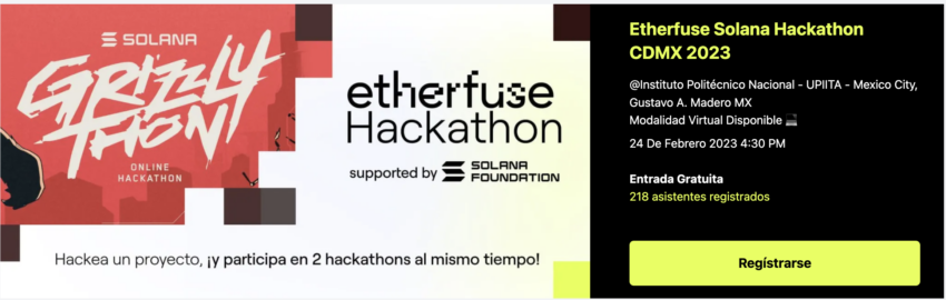 “Únete al primer hackathon de blockchain con Solana en Ciudad de México, del 24 al 26 de febrero de 2023, y compite por una bolsa de 200,000 MXN en premios. Participa como programador, entusiasta de tecnología o artista y aprende, crea y compite con Solana. Ya sea en persona o virtualmente, conoce a otros profesionales de la región y explora las posibilidades de la tecnología blockchain”.