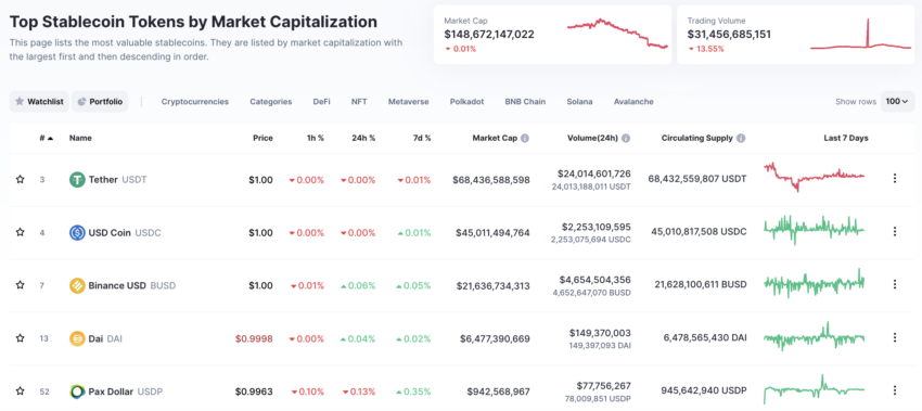 Según Coinmarketcap, Tether generó un mercado de stablecoins ahora valorado en más de 148 mil millones de dólares. El USDT alcanzó un total de 450,000 dólares en monedas en circulación dentro de un año desde su lanzamiento, y luego 7 millones de dólares un año después, dijo la empresa en una publicación de blog.