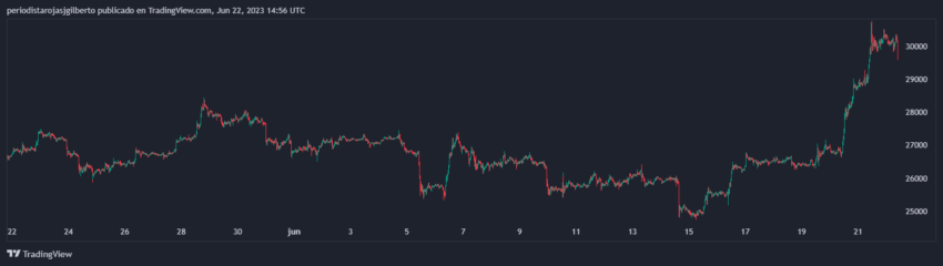 Y es que luego de que BlackRock solicitara un ETF de Bitcoin al contado a la SEC, firmas del prestigio de Fidelity, Valkyrie, Invesco y Wisdom Tree han hecho lo propio, lo que habría ocasionado que el BTC volviera a probar las mieles por encima de los 30.000 dólares (30.240 dólares) este jueves 22 de junio.